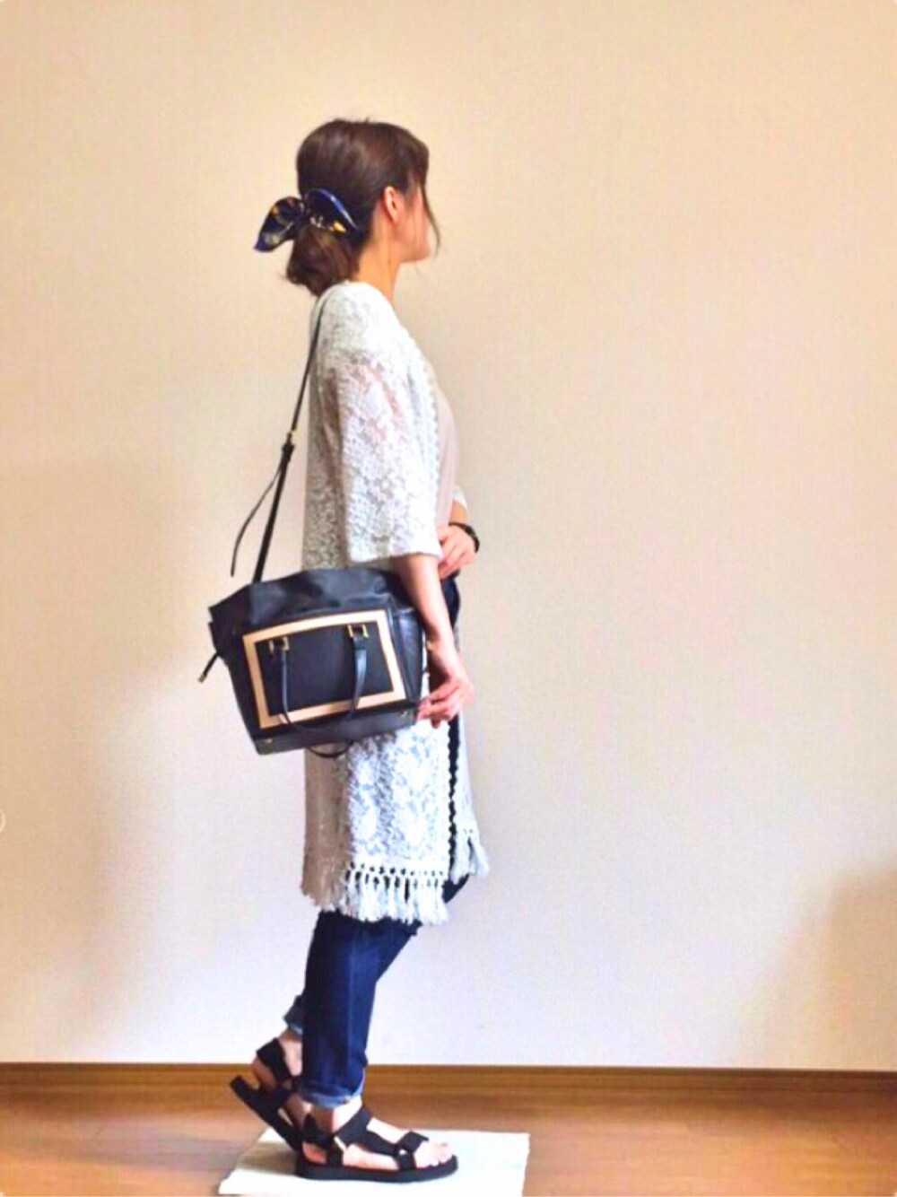 R i n a 。のシュシュ「スカーフシュシュ 716422」を使ったコーディネート