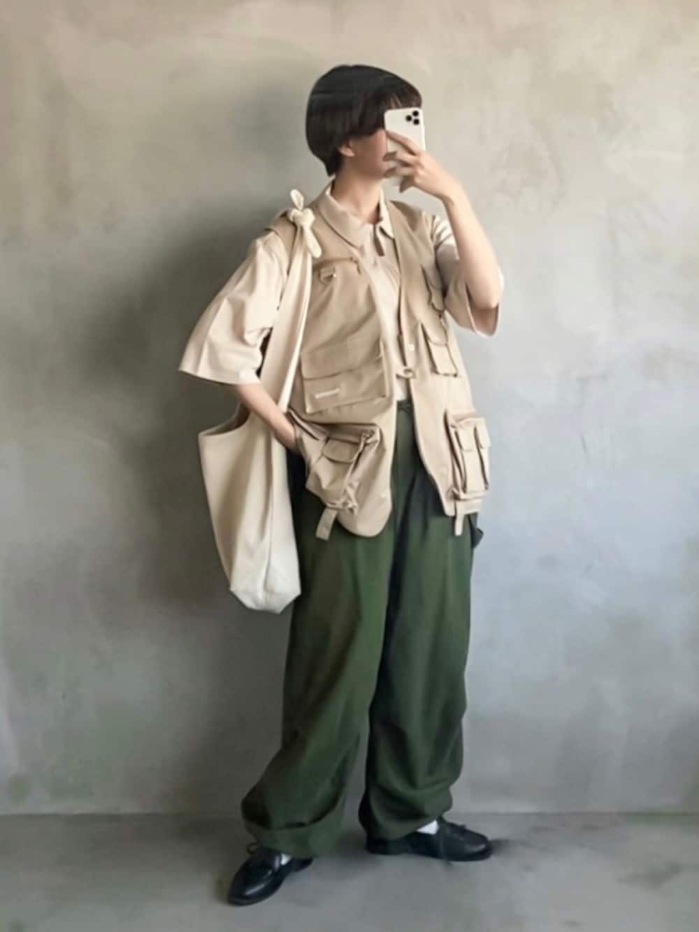 ベージュとカーキで作るきれいめミリタリーコーデ🫠