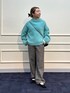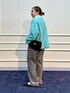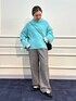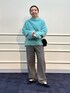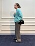 フワッと感がかわいいミントグリーンのニットに 優しいラメの天竺インナーを首元や袖口からちらっとアクセントに。 年末に向けた華やぎ感も出るコーデです。 トップスが甘めな印象ので、パンツはトラッドなアイテムを合わせてキレイめカジュアルに。 ⚫︎ニット 首元はボトルネック、袖はややベルスリーブで身幅にはゆとりがあります。 シャツをインナーにしてもかわいいです。 小柄さんでも長すぎない丈感です。 ⚫︎パンツ ワイドすぎない落ち感のあるシルエット。 ニットをインしなくてもスッキリきまります。 サイドにベルトがあるので、インスタイルだとまた印象が変わります。