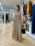 着用サイズ ワンピース: サイズ1 薄手でハリのあるポリエステル生地に 胸元のピンタックとバックのギャザーが上品なフレアシルエット。 ほんのりシアーな生地が軽やかな一枚です。 キャミソール仕様で下ふくらはぎあたりまでのインナーペチコート付なので透けも安心です。 着丈で差のあるサイズで サイズ1なら145cmでもマキシ丈で着られます。ヒール2cm程のサンダルと合わせています。 シルエットやバランスが気になる方は 共布のベルトでウエストマークして すっきり見せることもできます。