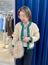 Akari Yasui(マクウェル西宮ガーデンズ店)のカーディガン/ボレロ「配色ニットジャケット」を使ったコーディネート