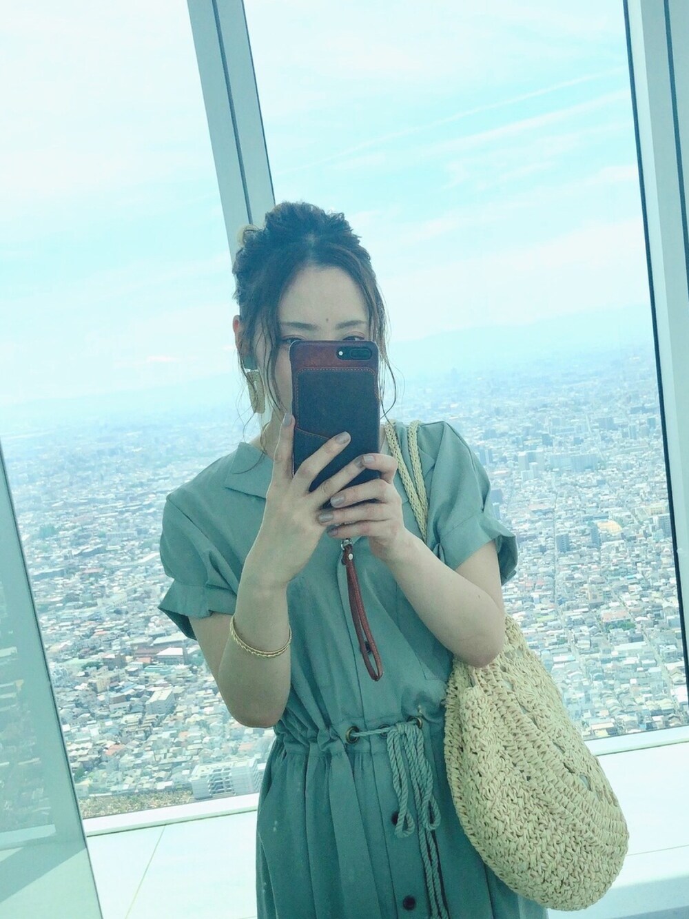 大阪旅行に言った時に着て行った服! ミスティックのサファリワンピ色も形も可愛すぎる😍
