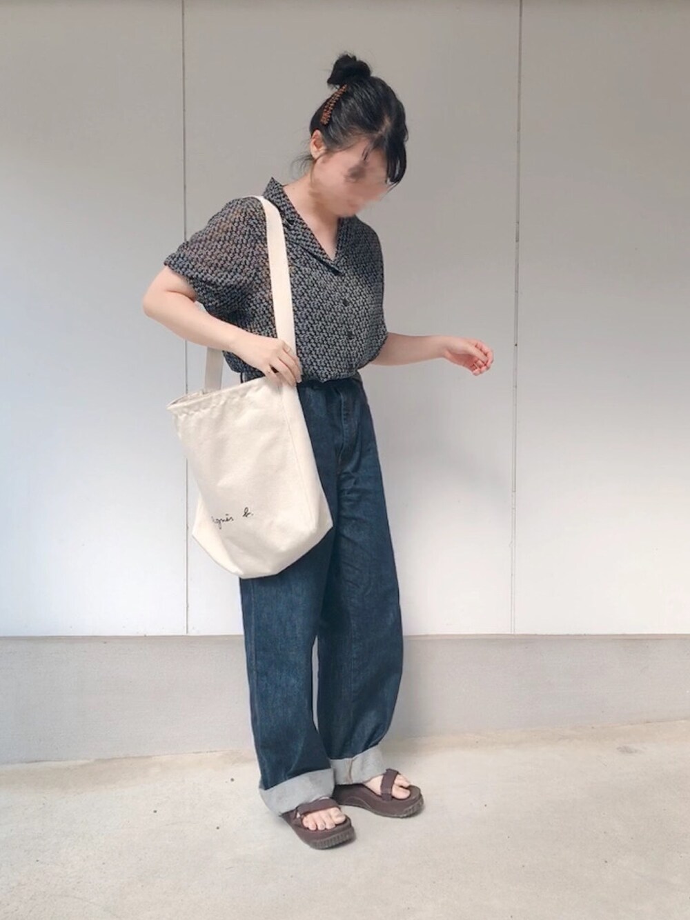 ゆうのシャツ/ブラウス「シフォン花柄開襟ブラウス」を使ったコーディネート