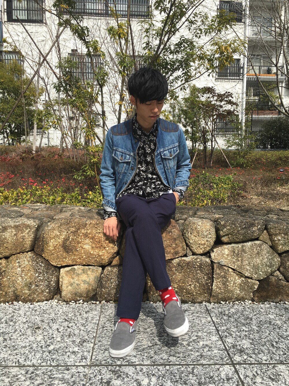 今日は暖かいですね!! 最高に天気も良いですし! ノーカラーのモトクロスGジャンにアクセントに柄シャツを! 柄シャツってコーデを引き立ててくれるので好きです★