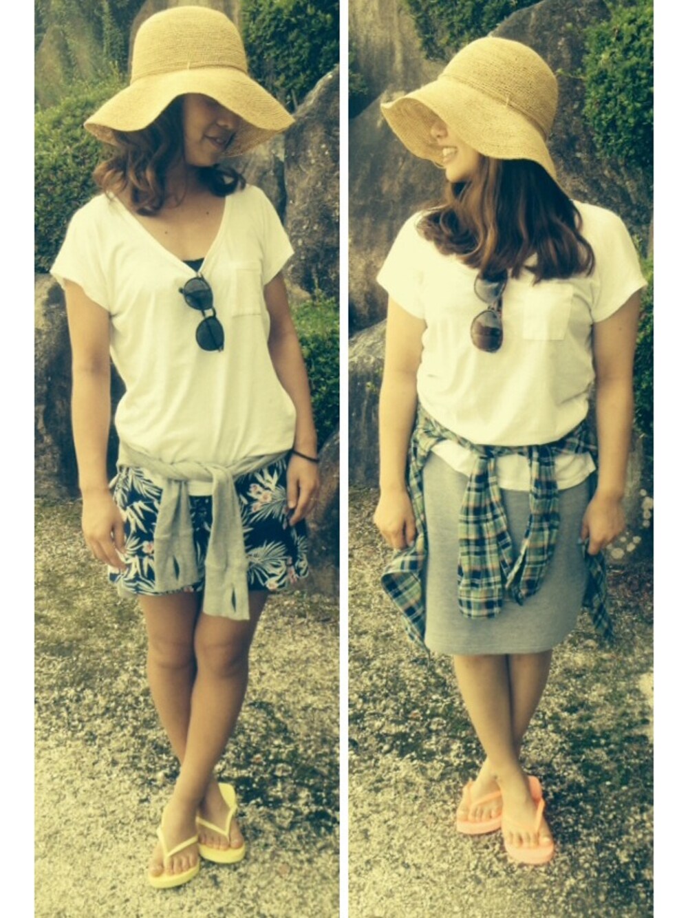 今日はBBQ♡ 帽子:無印良品 Tシャツ:GU ビーサン:OLDNAVY