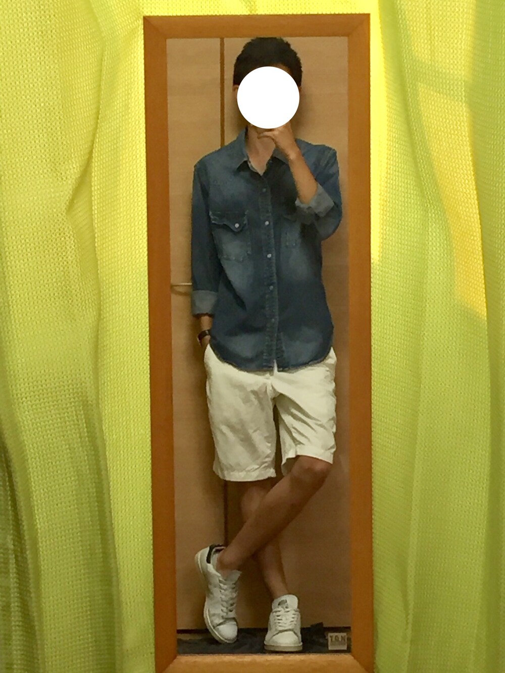 シンプルデニムシャツコーデ 白と青の組み合わせは本当にかっこいいと思う! このコーデがいいと思ったらいいね、セーブ、お気に入りお願いいたします