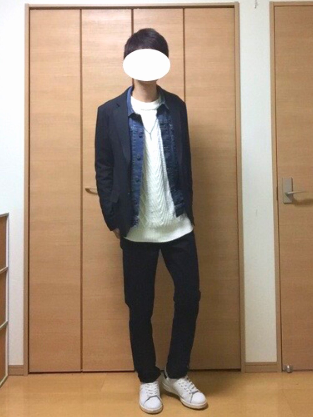 テーラードジャケット×Gジャン×白ニット!