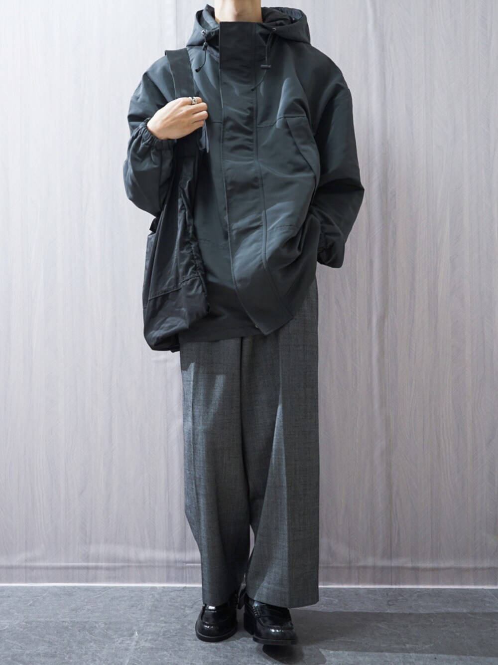 Takiのスラックス「WOOL BAGGY TROUSERS」を使ったコーディネート