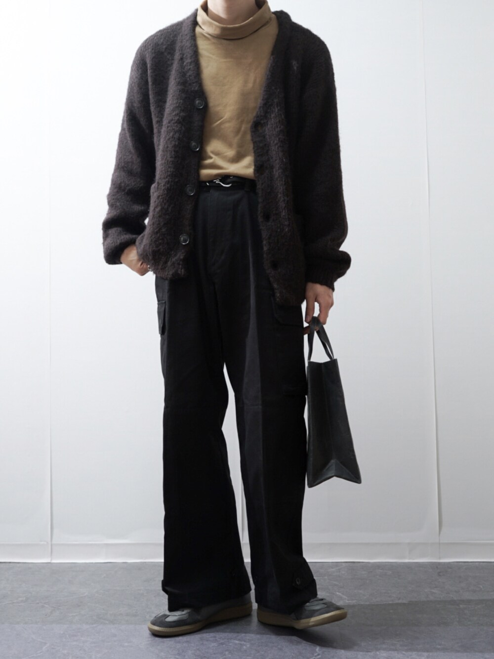 Takiのカーディガン/ボレロ「メランジ モヘアライク シャギーVネックニット カーディガン」を使ったコーディネート