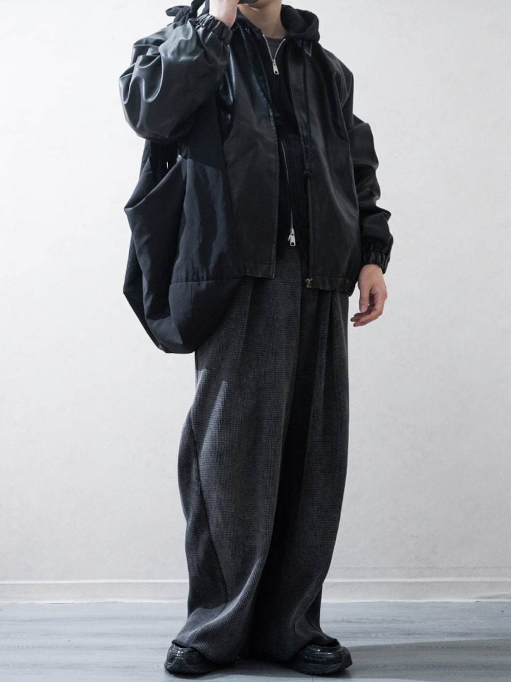 Takiのブルゾン「Vintage-like synthetic leather blouson/ヴィンテージライク PUレザー ブルゾン」を使ったコーディネート