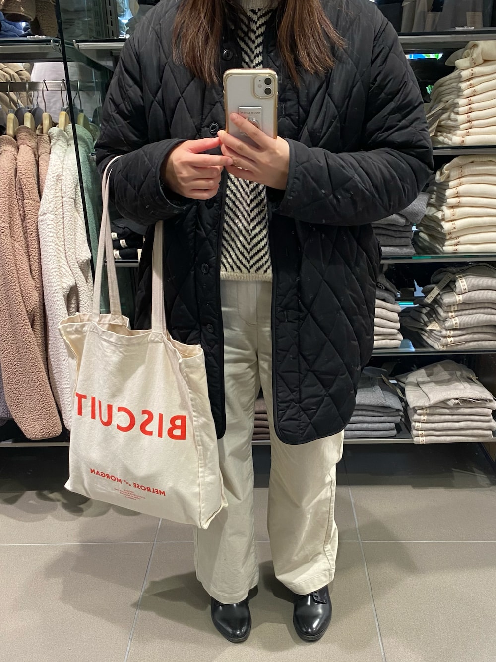 ハルカのノーカラージャケット「リバーシブルキルティングボアコート」を使ったコーディネート