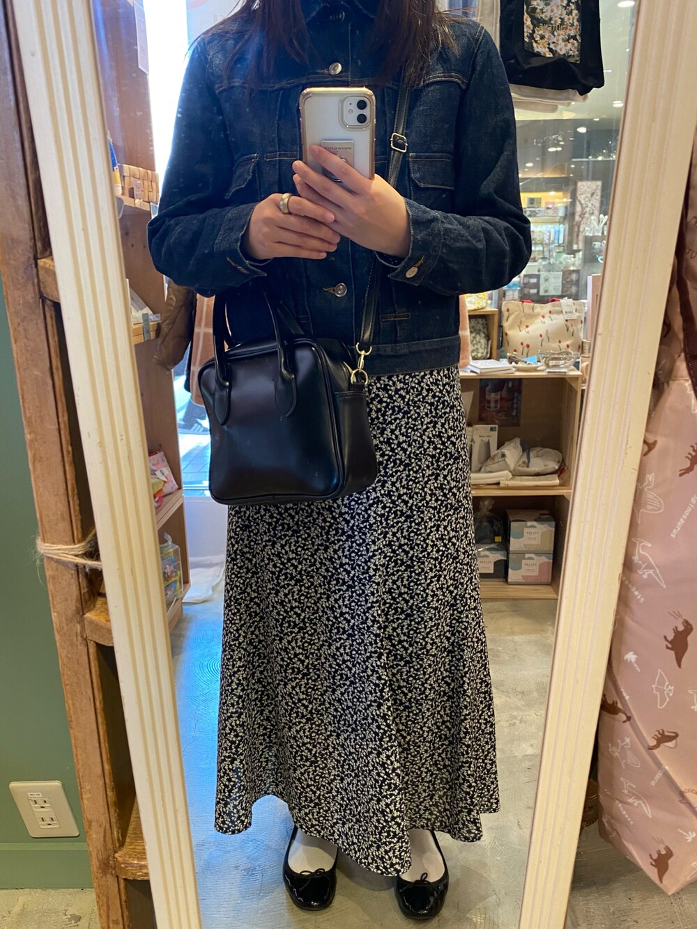 念願のAPCのデニムジャケット! またもやメルカリでお迎え😂 ボタン全部閉めてもぴったりで良い買い物しました🥰 花柄のマーメイドスカートと一緒に着て春っぽく🌷