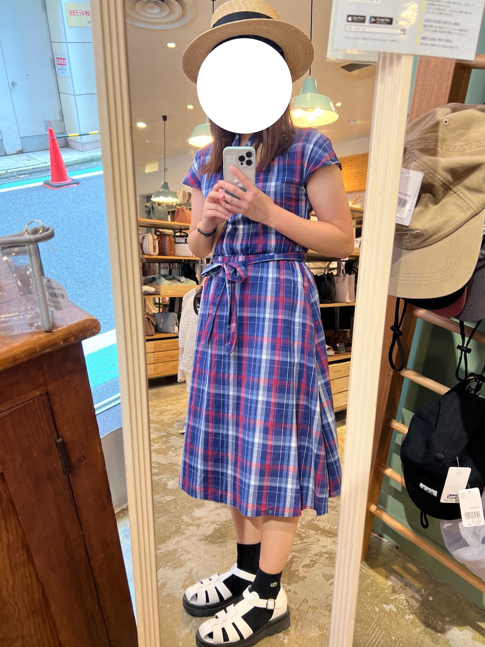 昨日のコーデです👒 カンカン帽にチェックのワンピで夏らしく🌻