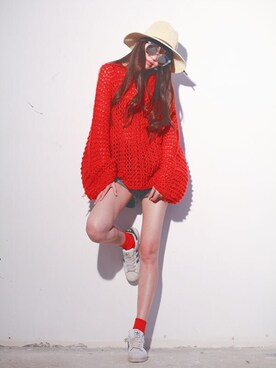 「babestyleのアイテム(ニット/セーター、レッド系)」を使った、mm-MoMoさん(レディース・165cm)の秋コーディネート