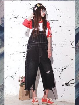 「babestyleのアイテム(サロペット/オーバーオール、ブラック系)」を使った、mm-MoMoさん(レディース・165cm)の秋コーディネート
