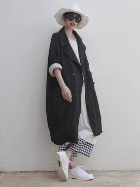 「babestyleのアイテム(トレンチコート、ブラック系)」を使った、mm-MoMoさん(レディース・165cm)の秋コーディネート
