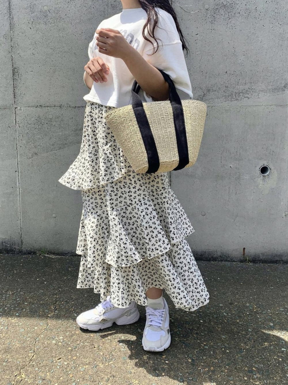 前3段、後ろ2段で着回しできるティアードスカート👗 揺れ方が綺麗です✨