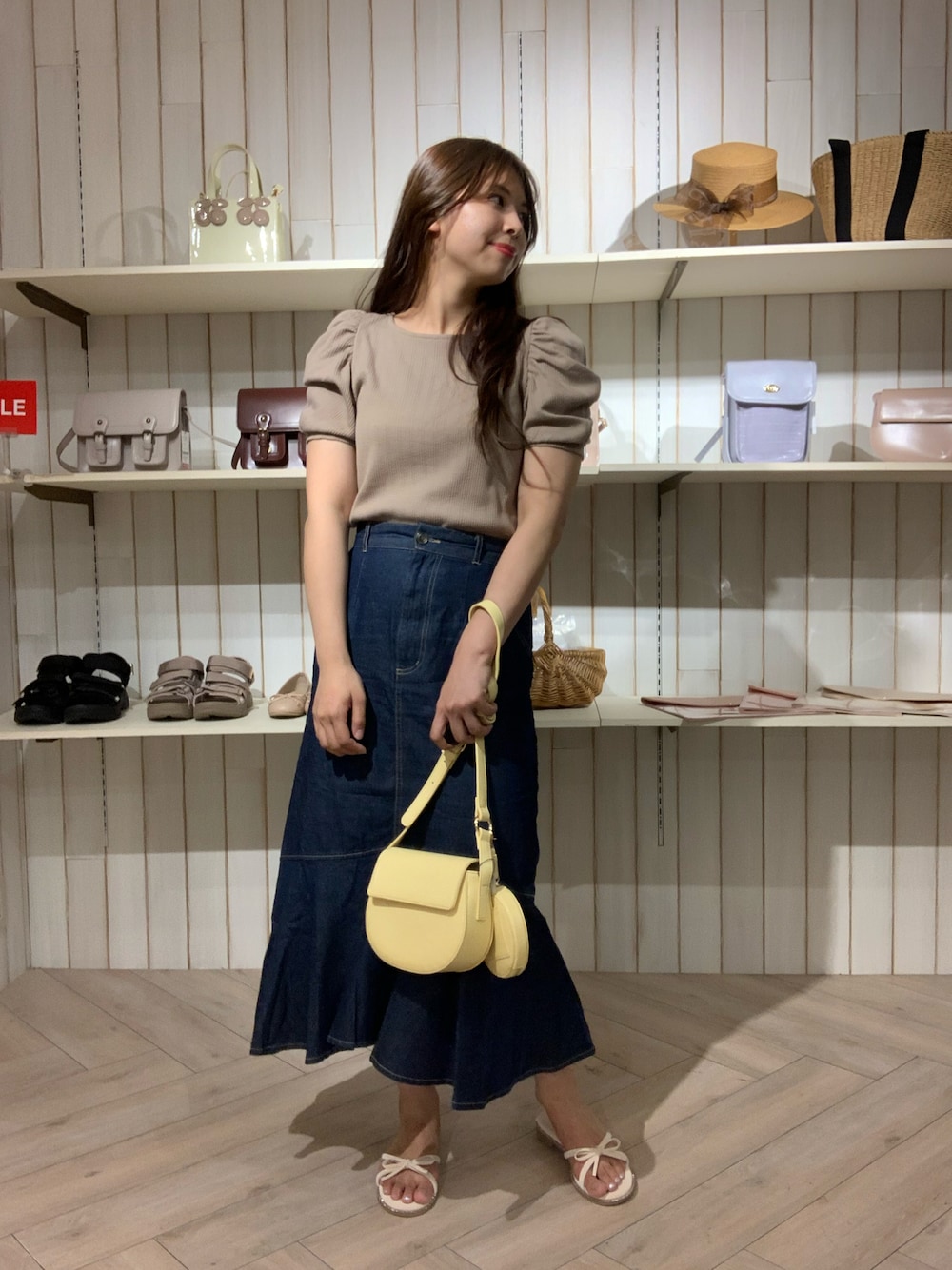 大人気のマーメイドスカートのMサイズ履いてみたよ! 私は骨格ウェーブだからマーメイドシルエットやっぱり細くみえる🥺 160cmでロング丈好きだからMサイズ派かな🧐 このデザインは太もも辺りタイト過ぎないから骨盤張ってる私でもシルエットカバーされて綺麗にみえました、感動🥲✨