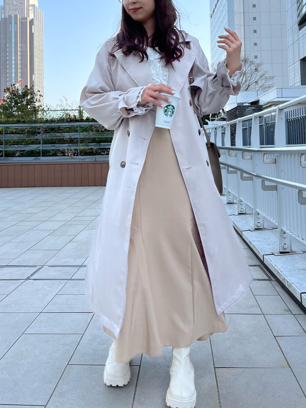 やまちろのトレンチコート「Olivebasicトレンチコート/春アウター/ロングコート」を使ったコーディネート