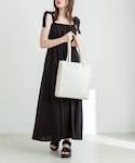 やまちろのワンピース/ドレス「肩リボンシャーリングキャミワンピース」を使ったコーディネート