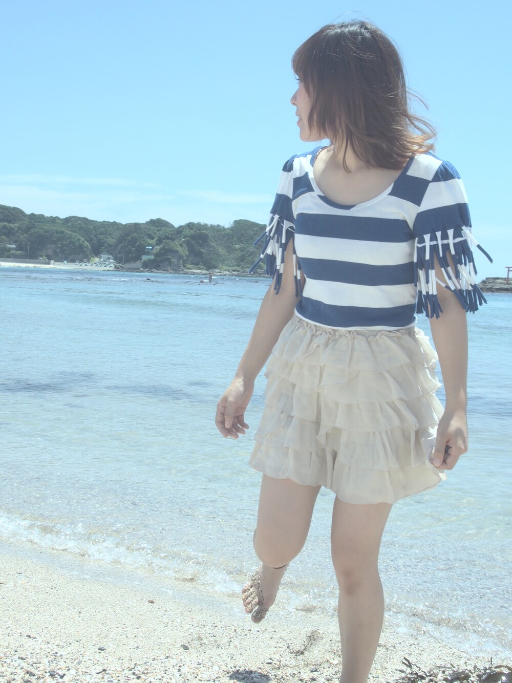 またまた海に行ってきました* 今回は憧れのYUKIちゃんっぽいこーでにしてみました フルネルソンの袖がフリンジになっているTシャツはYUKIちゃんが汽車に乗ってのPVで着ていたもの 汽車に乗ってのPVが大好きです!