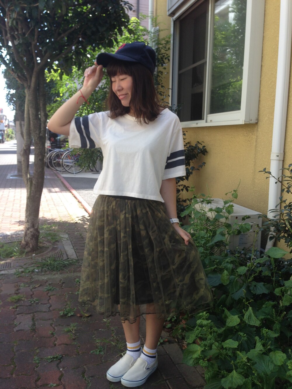 最近アダムエロペのキャップをよく被っている気がします!笑 涼しくなってきたのでそろそろニットキャップも被りたいです☆ この日もスポーツmix カモフラ柄のスカートはチュール素材になっているので少しフェミニンな雰囲気になるのかな? カモフラ柄のフレアスカートも欲しいです 友達と友達の赤ちゃんと遊んだのですが、スカートのチュールをめくって顔にかけて楽しそうに遊んでいたのが可愛かったです キャップもブカブカなのに被ってみたり〜 本当に子どもは可愛いです♡ 夕方は寒かったのでアナザーエディションのジャケットを羽織ってました(^^)