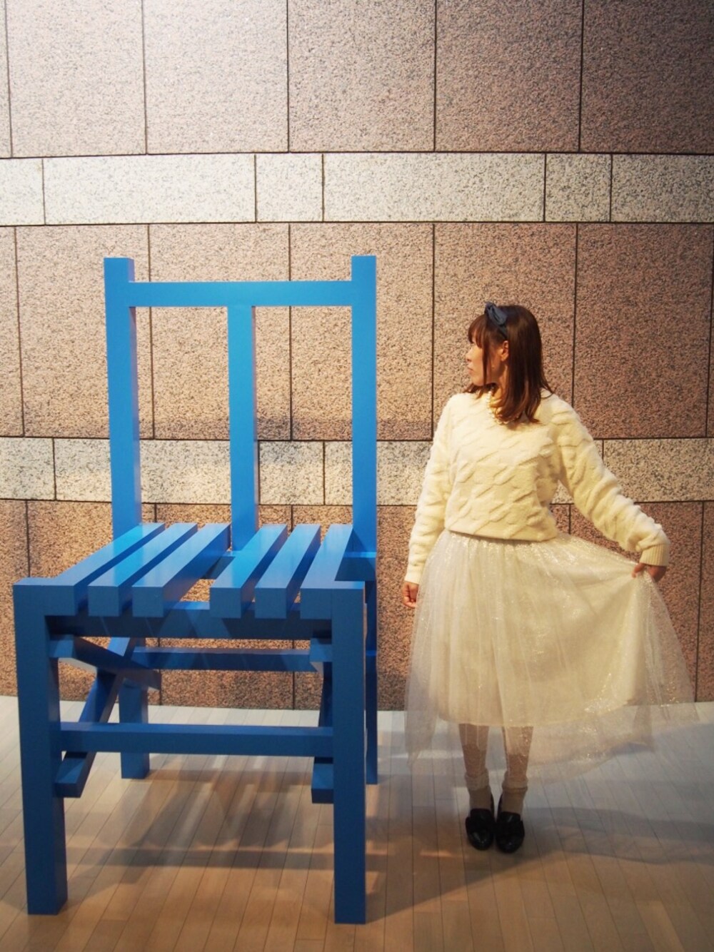 以前載せたコーデの別ショットです! 美術館へ行くとついついたくさん撮ってしまう傾向があるようです 笑 椅子が大きくて自分が小さくなったような錯覚が面白かった1枚 まぁ元々大きい方では無いのですが 笑 スカートの銀色のキラキラがライトに反射していて綺麗です 美術館に飾られているもの、、、 ついつい触りたくなってしまいますね〜♪