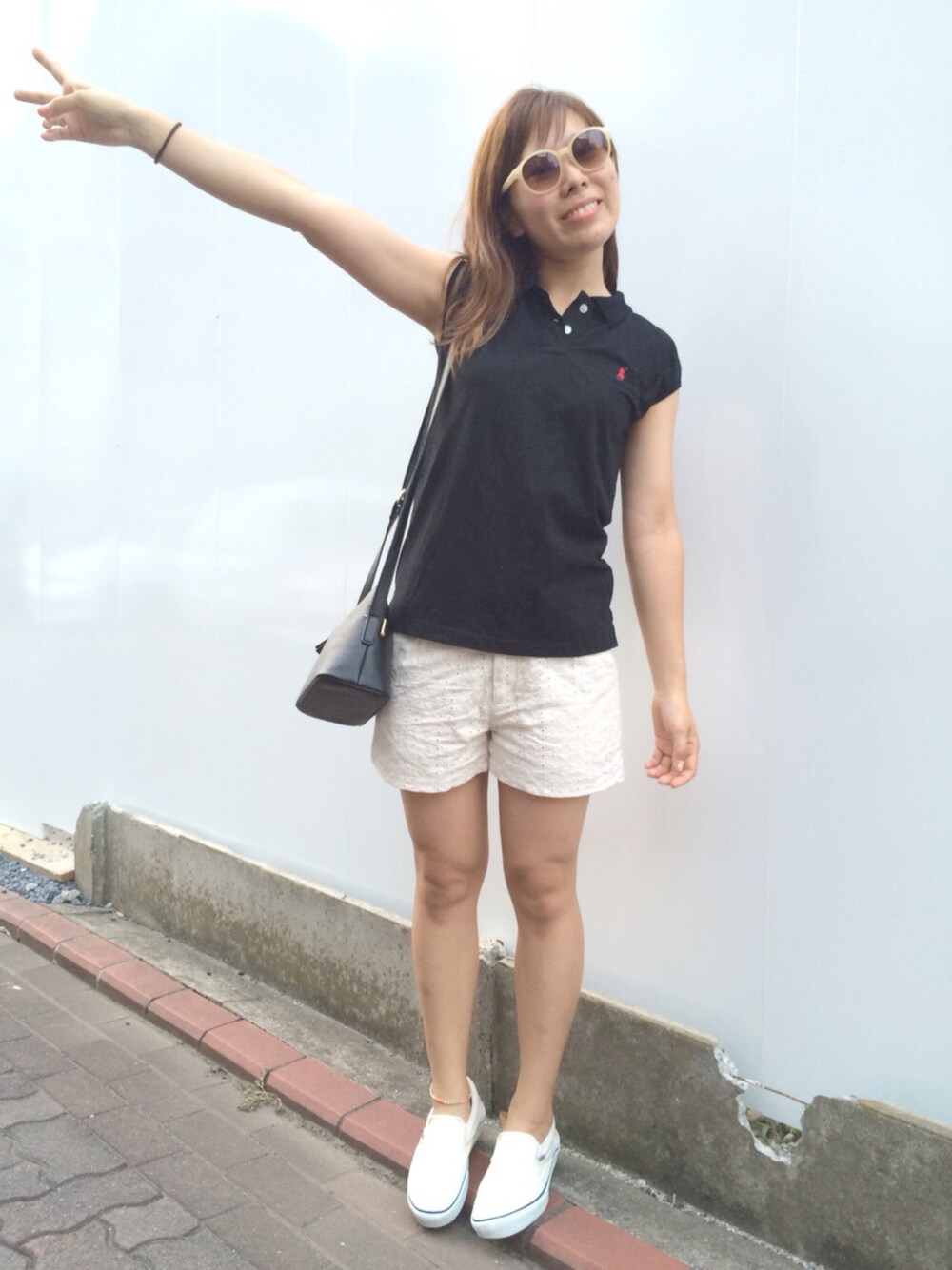 ちょっとそこまでプラっとこーで☆ スッピンなのでサングラス! 暑かったので袖が短いポロシャツにレースのハーフパンツで夏仕様です 最近はシンプルな感じも好きっ