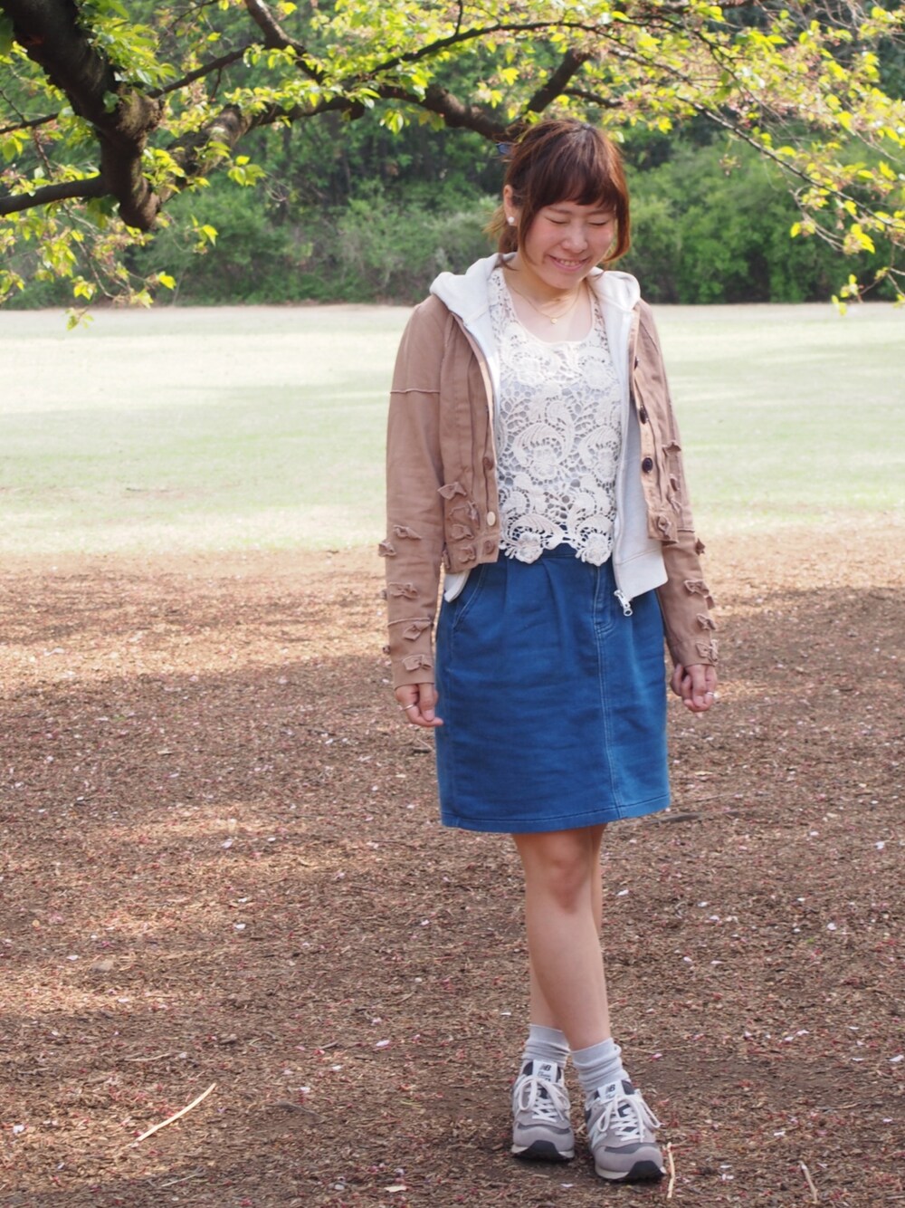 新宿御苑に行ってきました♪ 都会を抜けると緑がたくさんあって綺麗な花もたくさん咲いていて心地よかったです(*^^*) 芝生の上でお弁当を食べながらのーんびり過ごす休日も良いですね* トップス/古着 スカート/who's who Chico カバン/BEAMS boy 靴/NB