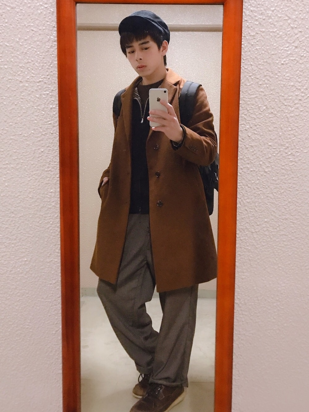 いつも僕のコーデをご覧いただき本当にありがとうございます! ❤️ ➕ フォロー メッセ 、 いつも感謝しています。モテたくて始めたオシャレも今では楽しみの1つになっています! また今回のコーデもいいなって思って頂けたら❤️などよろしくお願いします(〃ω〃) 今回のコーデは同系色カラーで合わせてみました!落ち着いた雰囲気で、大人っぽく見えるかなと思います。 アウターオンアウターや、インナーとコート、靴の色を揃えたり、細かいチェックと、大きいチェックを組み合わせたりなど、少し凝ってみました!!😤 またバック、ジャケット、キャスケットを黒で揃え、ブラウンコートに対して少し暗めな雰囲気を出してみました。 別のポーズもあるのでもしよかったら見てみてくださいね💓