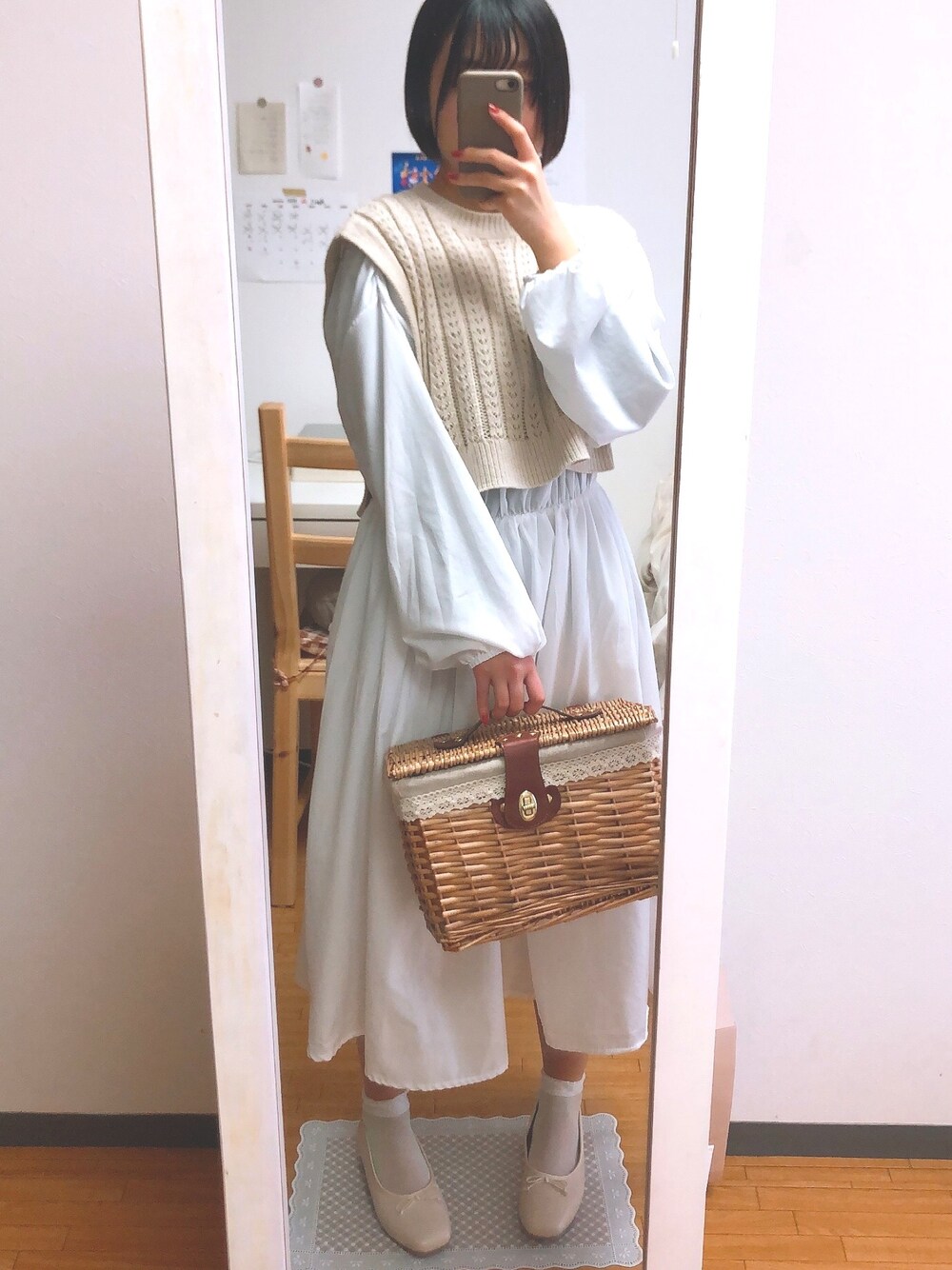 おはようございます☼ 白ワンピ×ニットベストで ガーリーに仕上げました𓇢 今日も一日がんばりましょう !