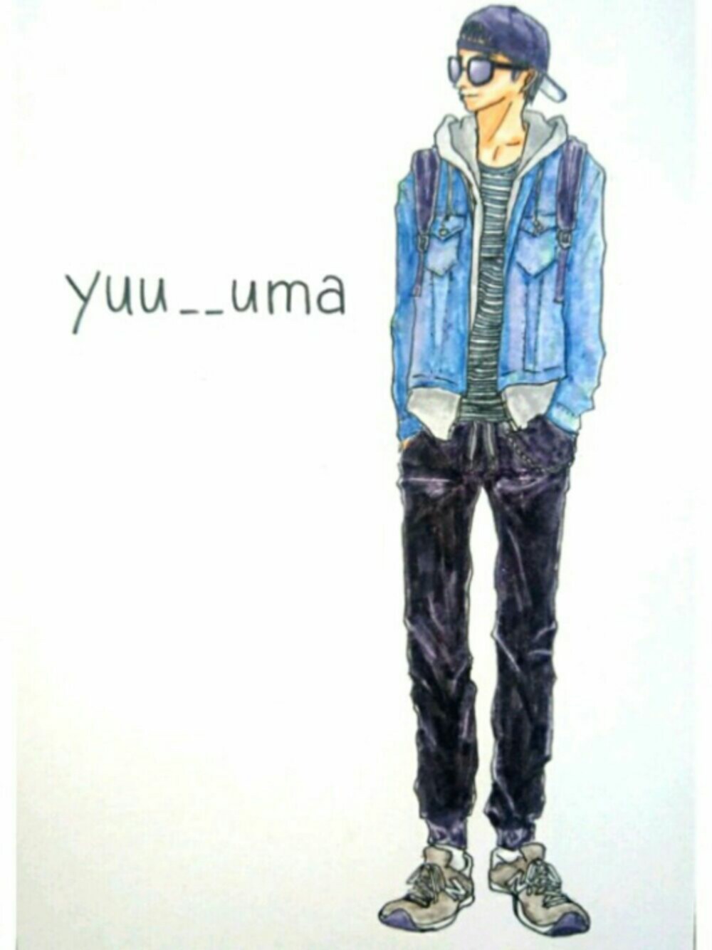 こんばんわ、いさすけです☺ 以前インスタで描かせてもろたゆーまさん🙌💓 ゆーまさんのコーデ好きすぎて、イラスト開始当初から無断で描きまくってたです😂 インスタで繋がれたときはビビりました😨✨