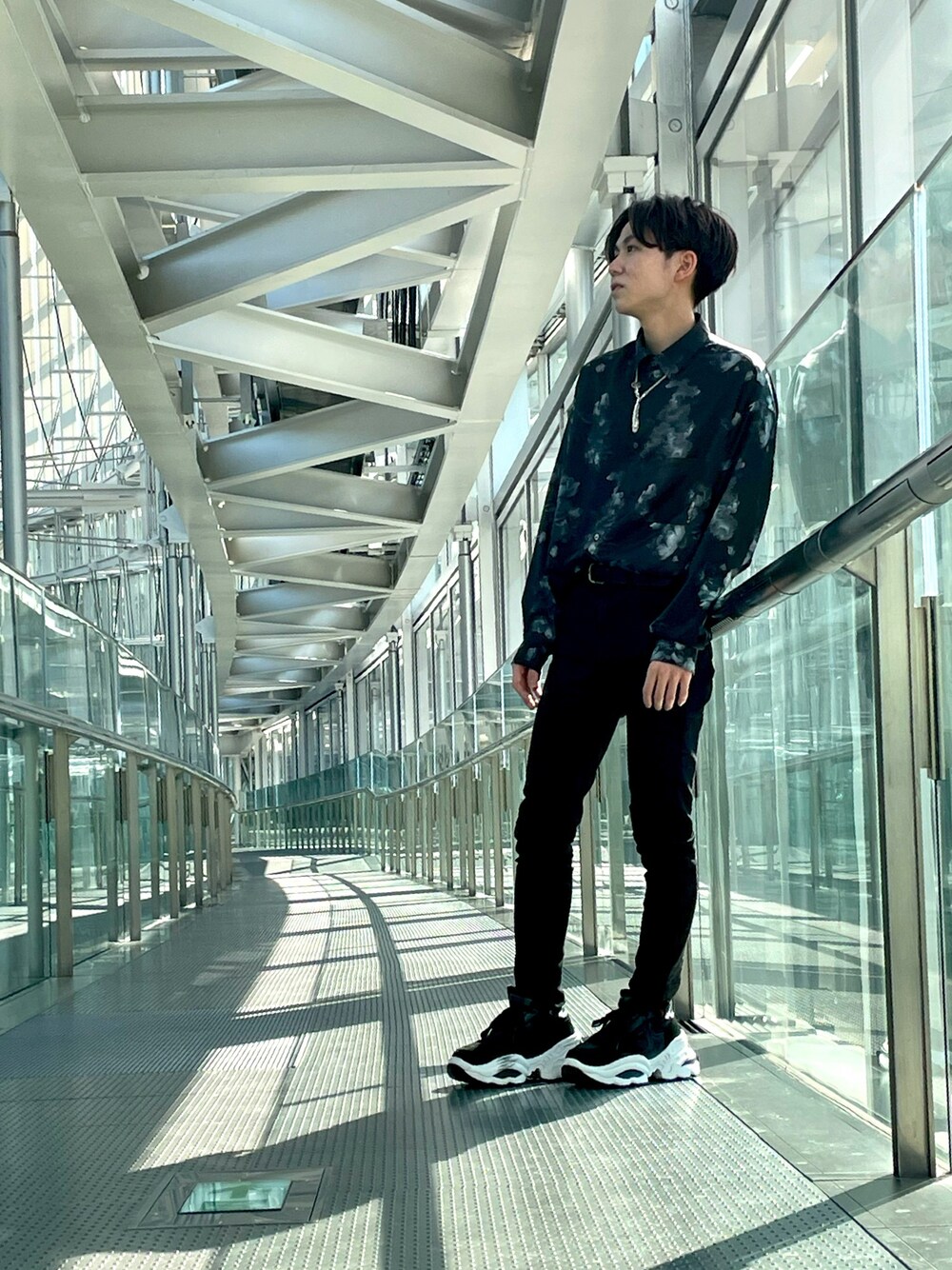 どうも✋こーきです! 今日は久しぶりのスキニーコーデ! 最近トレンドの柄物を取り入れたコーデです 靴とパンツの色を統一することで脚長効果を生み出します!さらに、シャツをタックインすることでさらにスタイルアップができます!