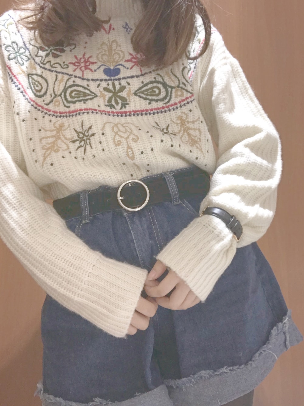 𝕒𝕪𝕒𝕓𝕠 ~ *のニット/セーター「【2018A/W】リブプチハイネックカラー刺繍ざっくり編みサイドスリット後ろ長めイレギュラーヘム長袖ニット」を使ったコーディネート