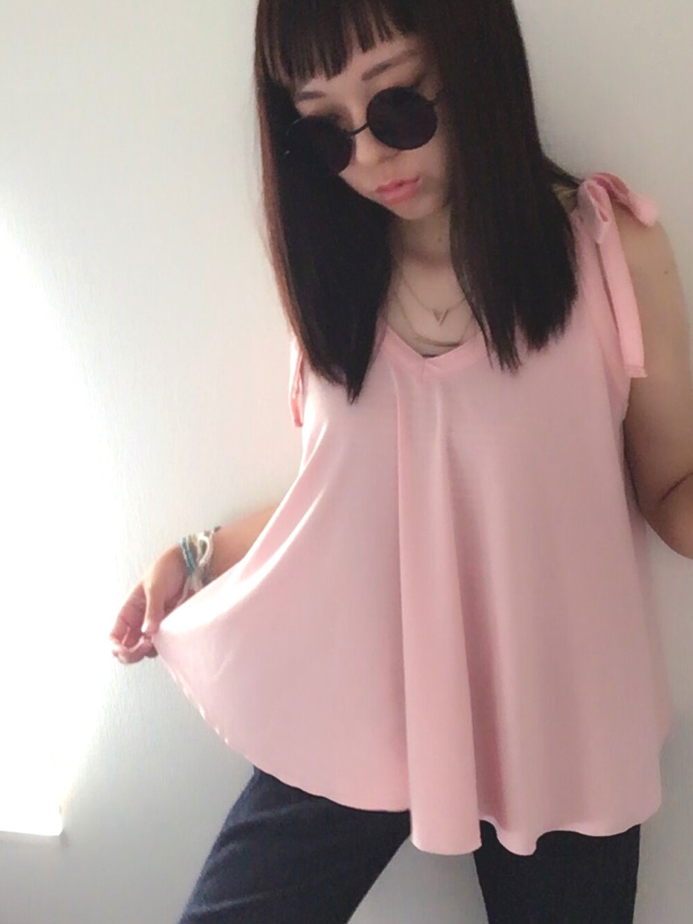 肩がリボンで激かわいー🙈💕とゆーことで ピンク欲しいな~着れるかな~とソワソワしつつ 狙ってたフレアキャミ🐚💟笑 やっと先週get〜~ぅ💛💪🏻 今日は白Tで合わせようと思ってたけど…… 暑すぎて変更🙅チューブトップ合わせ🙆← 濃いめのデニムでカジュアルすぎずに いい具合で朝活してきましたん😑🍴🌴 ボトム次第で、どカジュアルにしたり ガーリーにしたり、着回しききそう🙊💕