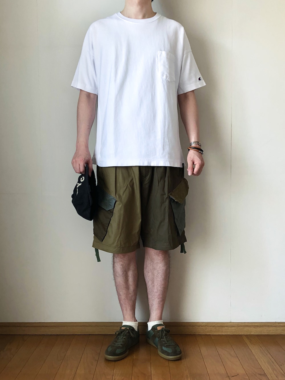となりのTシャツ/カットソー「Champion×WORK NOT WORK リバースウィーブポケットTシャツ」を使ったコーディネート