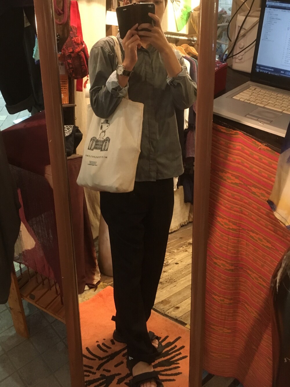 今日は友達と浅草ぶらぶら🚶 エスニックファッションのお店で(いいサルエルパンツあるじゃん!)と思って入ったらまさかの友達の方が買い物する展開でした笑 僕はお金がなかったのでまたの機会に... サルエルパンツはコーデに差をつけられるのでいいですよね🙆♂️(自分のコーデとは関係ない) ちなみにこのパンツは古着屋で買ったんですが、タグ見たらどこかの制服に使われていたやつみたいです笑