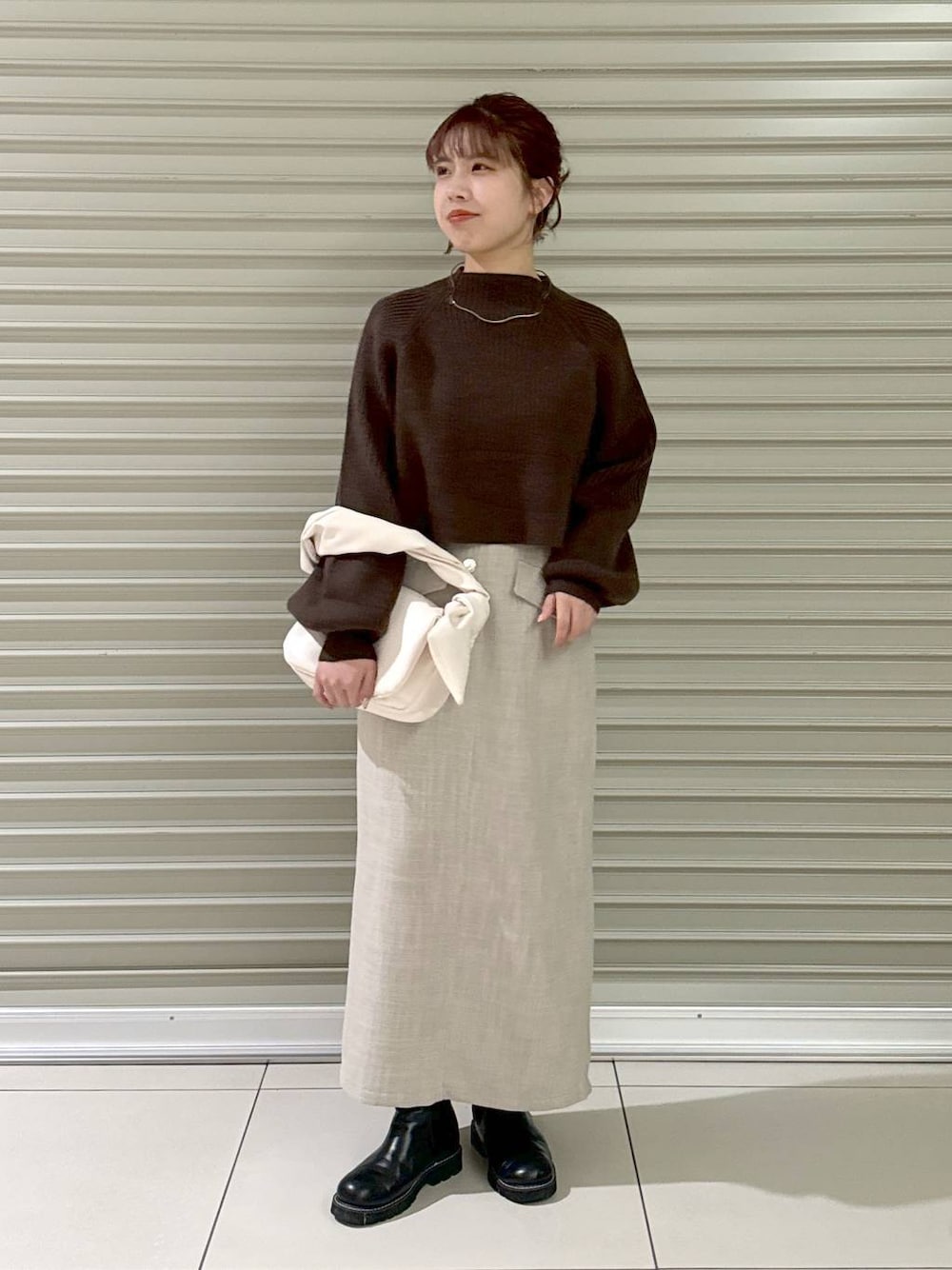 『大人淡色コーデ』※着用動画あります! ブラウンニットで大人淡色コーデ♡ タイトスカートは、腰回りのラインを拾いすぎないデザインなので、ショート丈と合わせても着やすいです♪ アイテムの詳細は下記をご覧下さい! Instagramでは日常も♪ ▷▶▷ コーディネートのご相談なども、 インスタDMにてお返事させて頂いてます♡ 是非お気軽にご連絡ください📮♡ ----------------------------- 【ニット】(フリーサイズ) ・厚みがあるしっかりめの生地で一枚でも暖かいです♡ ・お袖のもっちり感が可愛いポイント! ・首元は詰まりすぎず、程よい高さのハイネックです! ・お腹が隠れるくらいのショート丈なので、タックインしなくてもスタイルupして見えます! 【スカート】(フリーサイズ) ・細見えタイトスカート! ・ハイウエストで履いて頂けます♪ ・骨格ウェーブでも腰回りのラインを拾いすぎずに履きやすかったです♪ ・後ろはスリットが入っているので、歩きやすさも◎ ・ツイートのお素材が可愛いポイントです!
