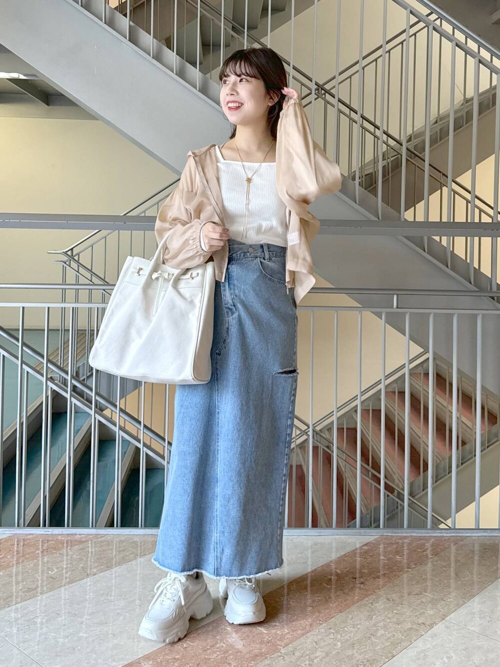 『淡色カジュアルコーデ』 ※2枚目の着用動画は明るさの加工なしです! 大人気のシアーパーカーが今年も登場♡ キラッとラメがある素材で、デニムを合わせるだけで トレンドなコーデです!🎶 アイテムの詳細は下記をご覧下さい! Instagramでは日常も♪ ▷▶▷ コーディネートのご相談なども、 インスタDMにてお返事させて頂いてます♡ 是非お気軽にご連絡ください📮♡ ----------------------------- 【トップス】(フリーサイズ) ・さらっと軽い生地なので、長い季節で着やすいです! ・ショート丈なので、合わせやすくスタイルup効果◎ ・トップスでも羽織でも使いやすいデザインです! ・どんなコーデにも馴染みやすいトップス♡ ・冷房対策や日差し避けとしても活躍間違いなし!! 【インナートップス】(フリーサイズ) ・スクエアネックとクルーネックの2wayで着て頂けます! ・程良くフィットする着心地で、カーディガンやキャミワンピースのインナーとしてもおすすめです♡ ・ジャケットの中などに着て合わせるのもオススメ! 【スカート】(フリーサイズ) ・スカートなのでカジュアルになりすぎず着やすいです! ・サイドのスリットはさりげなく抜け感がでます♪ ・ウエストはアシメデザインなので、トップスをインしたりショート丈のもので合わせるとポイントになります! ・ウエストはゆとりのあるサイズ感です◎