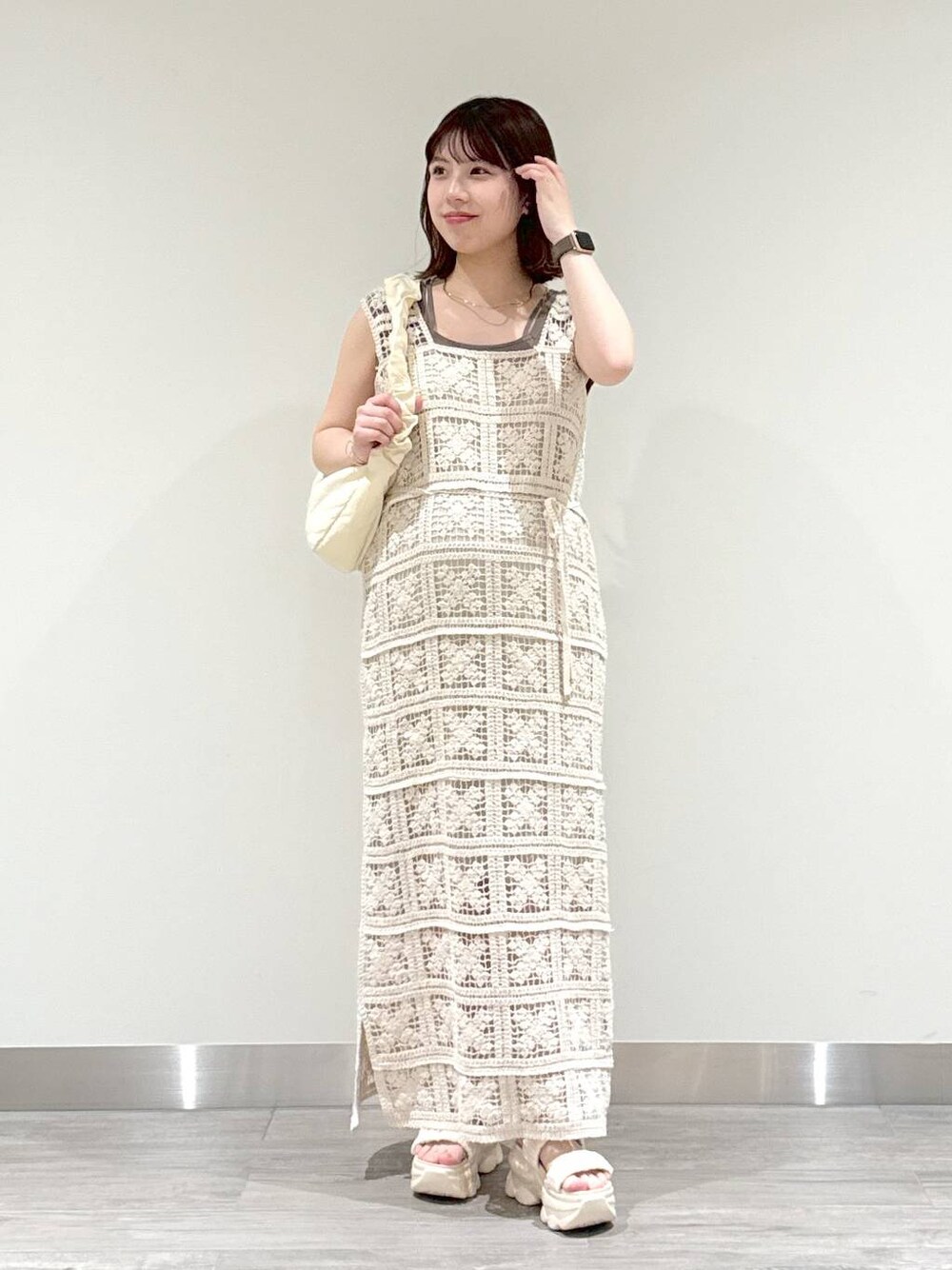 みゆみゆ(mysty woman タカシマヤゲートタワーモール)のワンピース「[追加2]クロシェロングノースリワンピ 117081」を使ったコーディネート