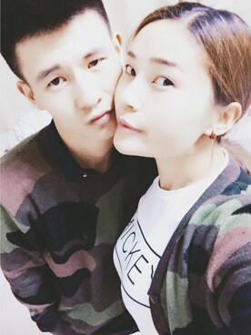 「黄先生のアイテム(ニット/セーター、グリーン系)」を使った、A黄太太さん(レディース)の秋コーディネート