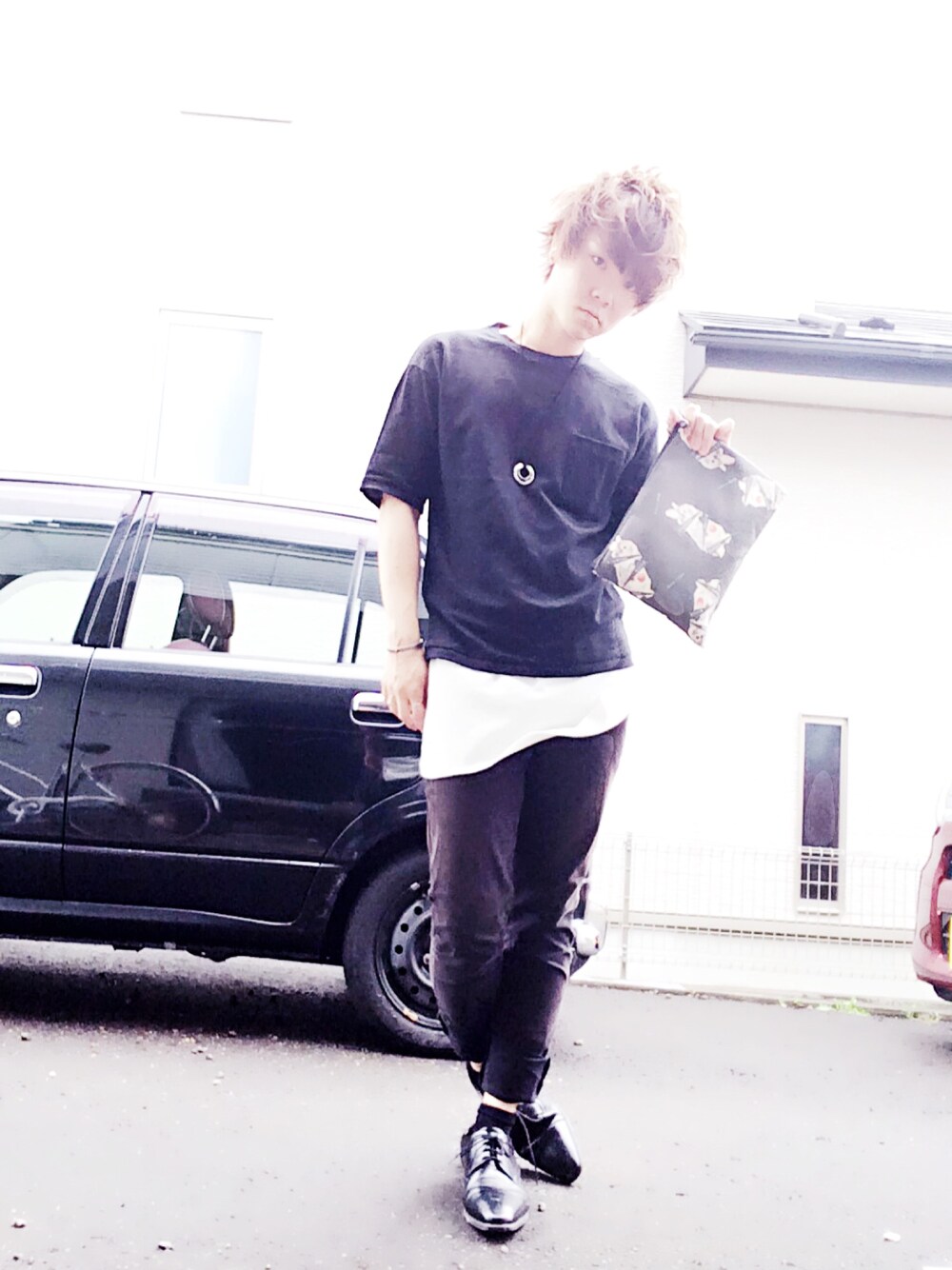 シンプルにまとめましたけど何か個性が無いなと思ってウサギちゃんクラッチバッグ取り入れました!