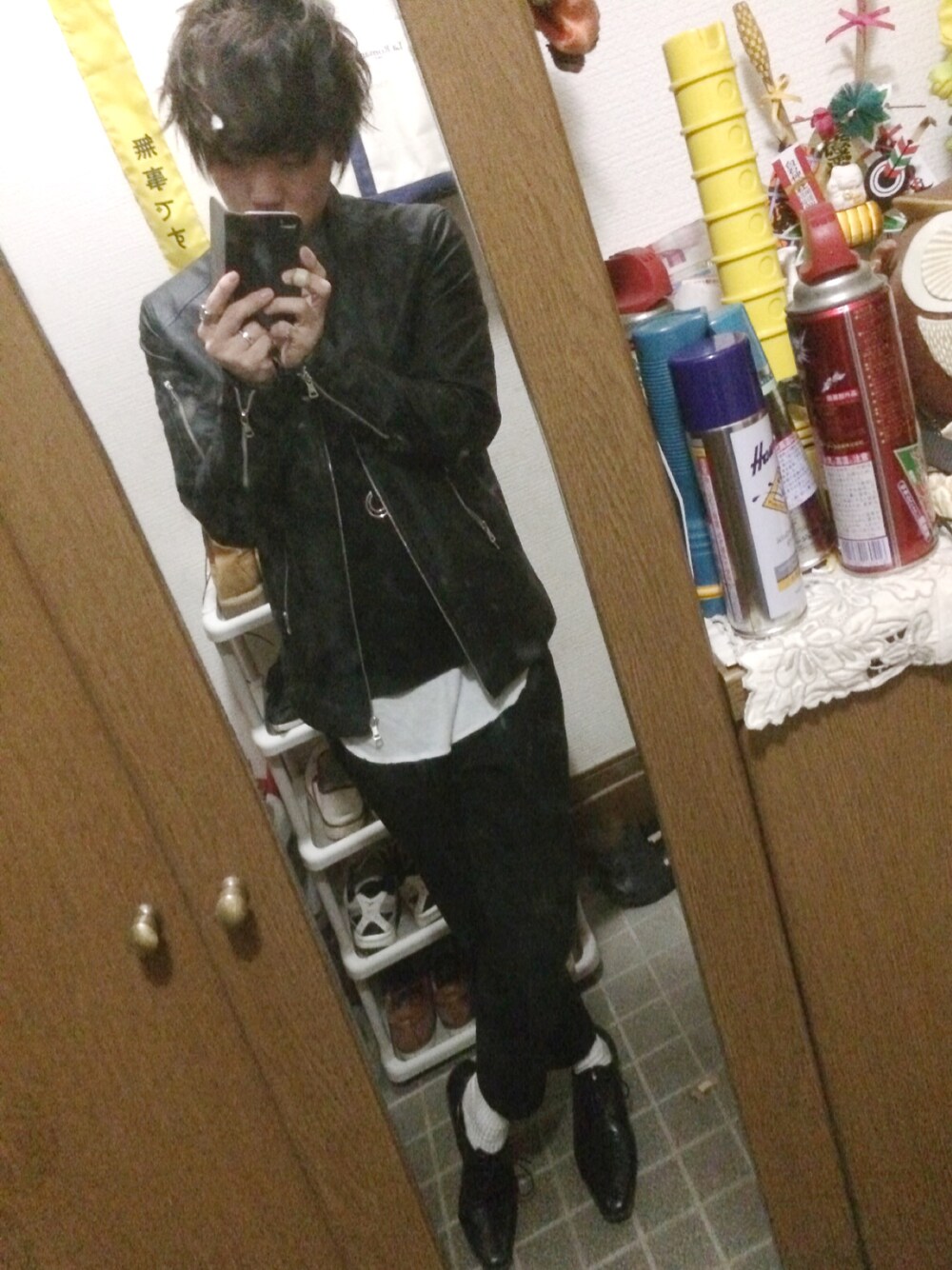 白のレイヤードと白のソックスがポイント!!最近ライダースコーデ多い大好き!!