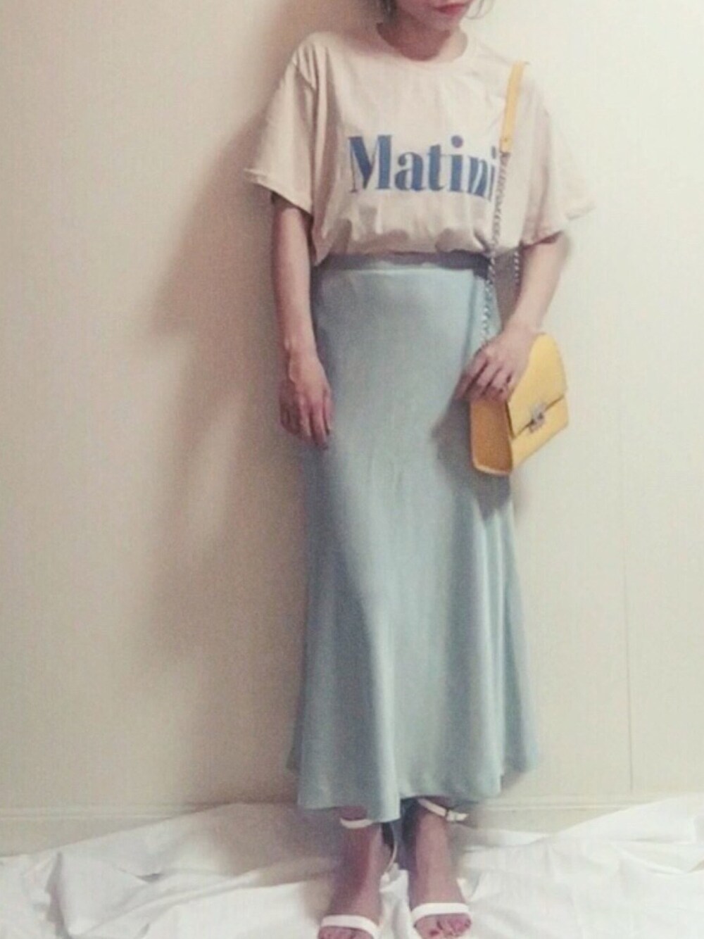 【 DHOLICのTシャツ】 *しっかり生地がお好きな方にピッタリ♡ *テロテロサテンスカートに合わせるとちょっと下に響くかな△ *でもなんともいえない色味がかわいい♡ 〜今日は半袖でいけるくらい暑かった説〜