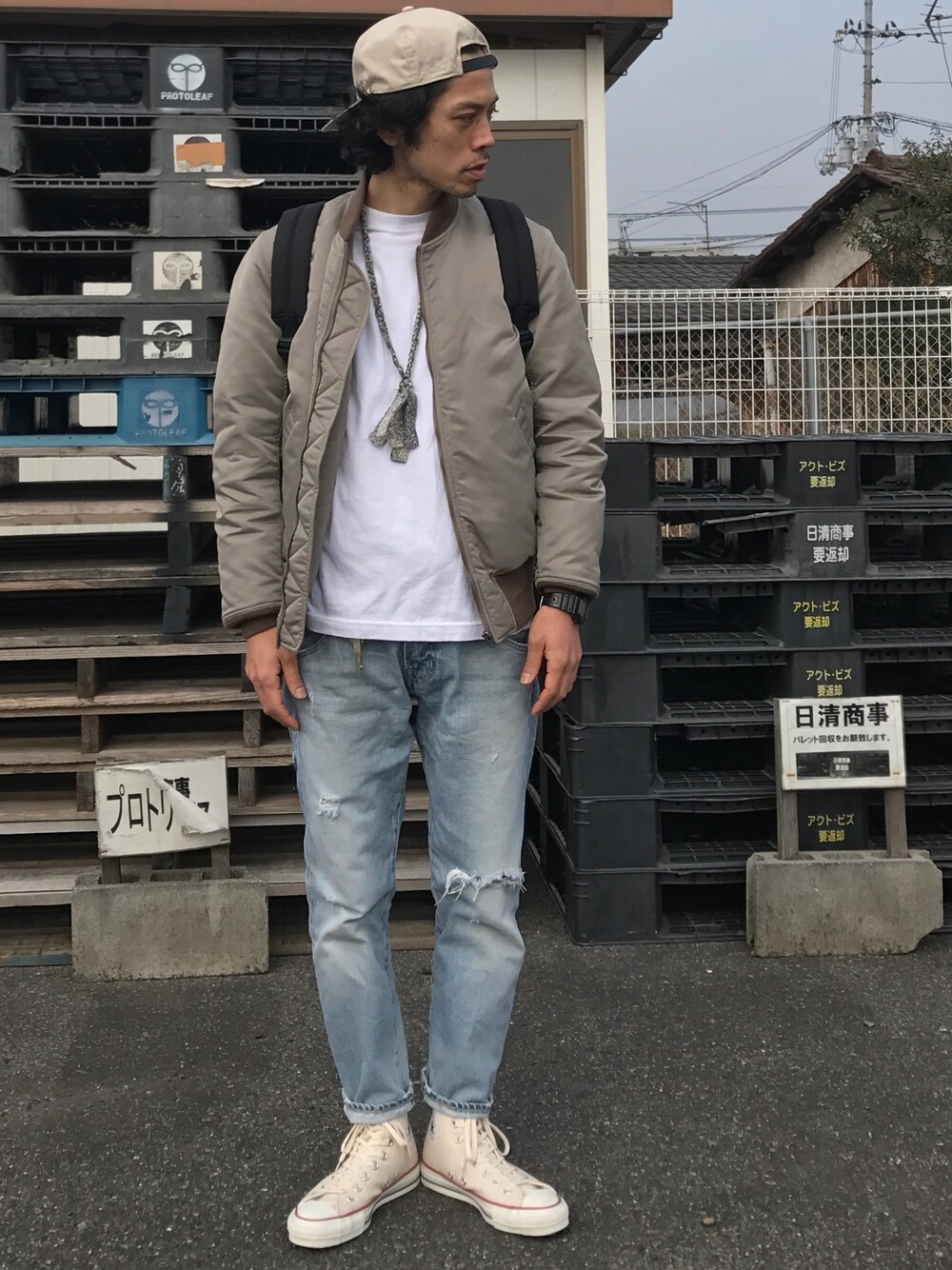 ガッツ‘石ころ’松のキャップを使ったコーディネート