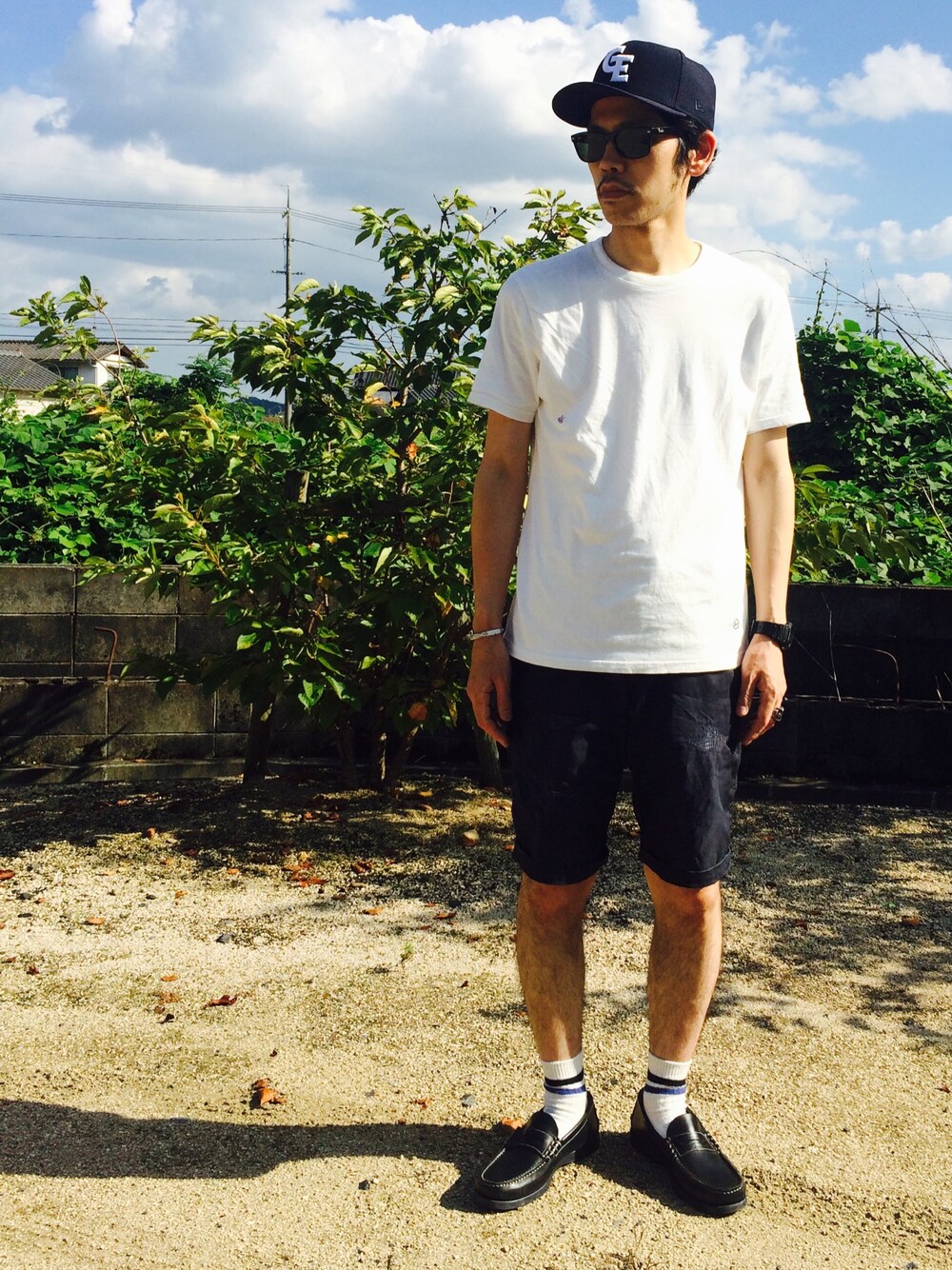 ガッツ‘石ころ’松のサングラス「Ray-Ban / Wayfarer」を使ったコーディネート