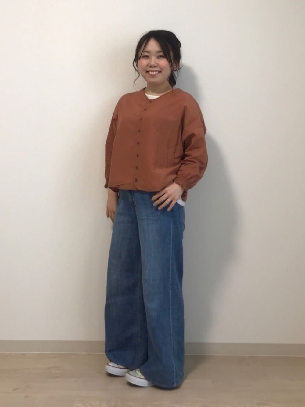 collexのワイドデニムはボリュームが出すぎないので小柄なわたしでも着やすくてとってもオススメです! 綿シルクのブラウスと合わせた春コーデでお家での時間もお洒落を楽しみたいですね。