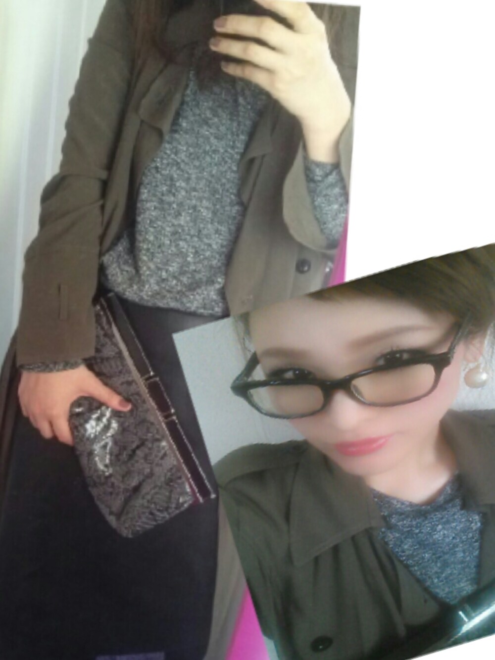 ZARAのレザースカート気に入ってます☆ お団子ヘアにダテメガネで、カジュアルに☆