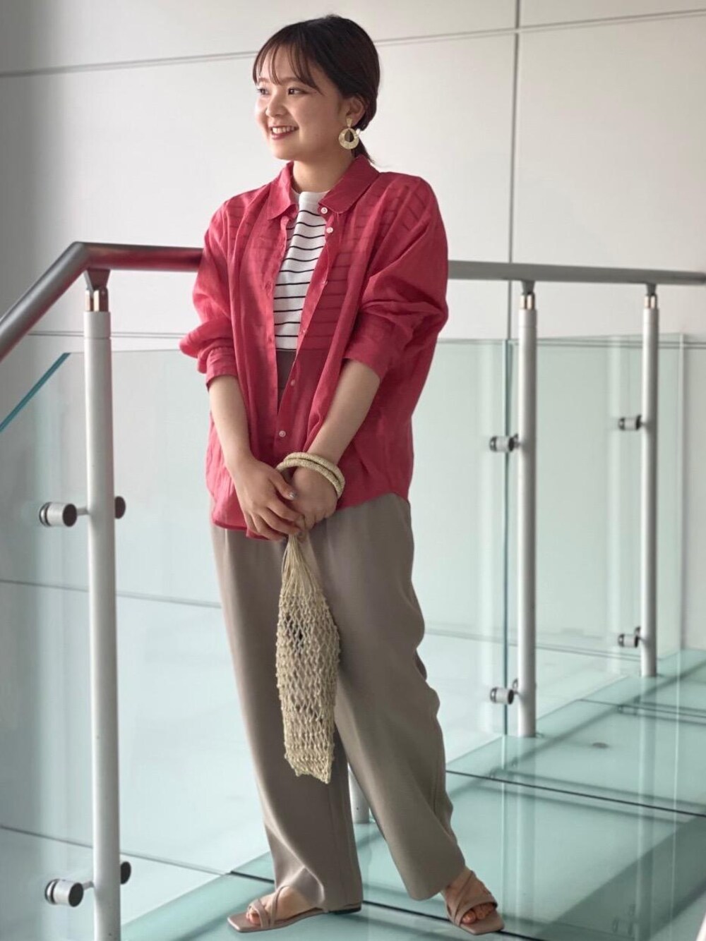 【身長150cm】 ベーシックカラーのコーディネートに、差し色でピンクのブラウスを合わせ女性らしい印象に◎