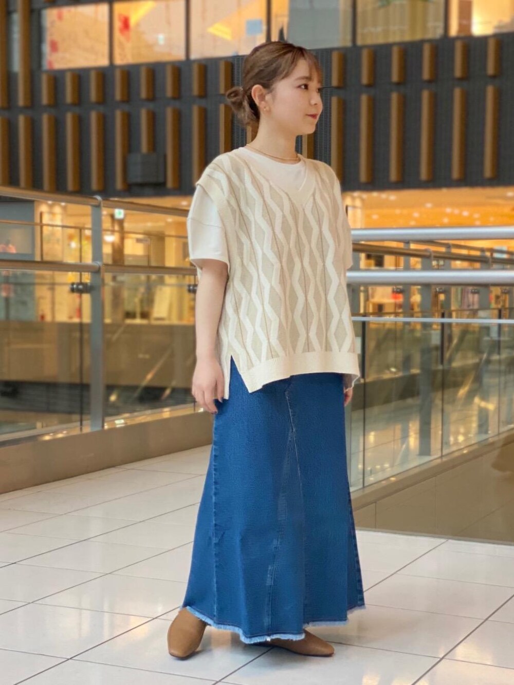 ・年齢:20代後半 ・身長:150cm ・普段着用サイズ : トップス 36/ スカート 36/ シューズ22.5cm 【サイズ感】 インナー:ゆったり ベスト:ゆったりめ スカート:標準(ヒップ周りタイトめ) ベストを主役に大人カジュアルコーデを組みました。ベストはインナーを半袖から長袖に変えていただければ、長くお召しいただけると思います♪ スカートは女性らしいラインの出るシルエットで、インスタイルで着用するのもおすすめです!